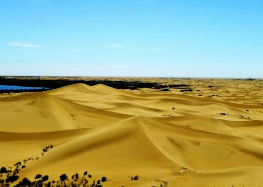 庫布齊沙漠,是中國第七大沙漠,在河套平原黃河“幾”字彎里的黃河南岸(有的人稱河套沙漠),往北是陰山西段狼山地區(qū)。“庫布其”為蒙古語,意思是弓上的弦,因為它處在黃河下像一根掛在黃河上的弦。古稱“庫結(jié)沙”、“破訥沙”,亦作“普納沙”。庫布齊沙漠是距北京較近的沙漠。位于鄂爾多斯高原脊線的北部,內(nèi)蒙古自治區(qū)鄂爾多斯市的杭錦旗、達拉特旗和準格爾旗的部分地區(qū)。長400公里,寬50公里,總面積約1.39萬平方公里,流動沙丘約占61%,沙丘高10~60米,像一條黃龍橫臥在鄂爾多斯高原北部,橫跨內(nèi)蒙古三旗。形態(tài)以沙丘鏈和格狀沙丘為主。