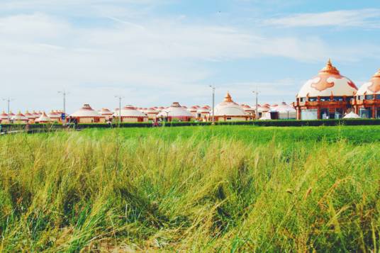 格根塔拉草原旅游區(qū)水草肥美,丘陵起伏,海浪似的馬群,金色霞云的駝群和白云似的羊群在綠海中游動,騎馬的牧人,手里拿者細(xì)細(xì)的套馬竿,像矛頭一樣尖尖地指向天空。傳統(tǒng)的蒙古包和現(xiàn)代的蒙古包相映成輝,為格根塔拉草原組成了一幅美麗動人的圖畫。游人可以漫游大草原,觀看賽馬、賽駱駝、摔跤表演,還可以騎馬、乘駝、射箭等,意興盎然。