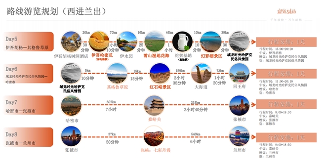 線路三“千里西域行”則以“千年敦煌·萬(wàn)年胡楊”——烏魯木齊至敦煌絲路星辰探索之旅為主題,該線路亮點(diǎn)為敦煌莫高窟、鳴沙山、伊吾胡楊、北疆自然風(fēng)景觀光和民族文化體驗(yàn)等。全程路線大約2202.6公里