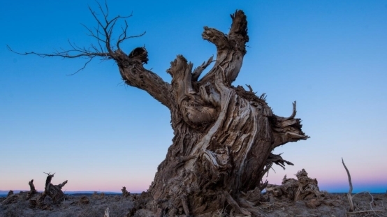 三千年區(qū)域里的胡楊,就像一個(gè)個(gè)勇士在生與死的拉鋸戰(zhàn)中堅(jiān)守,雖然每棵胡楊的筋骨已經(jīng)暴露,但是依然挺拔巍峨,奮力抗?fàn)帯?/p>