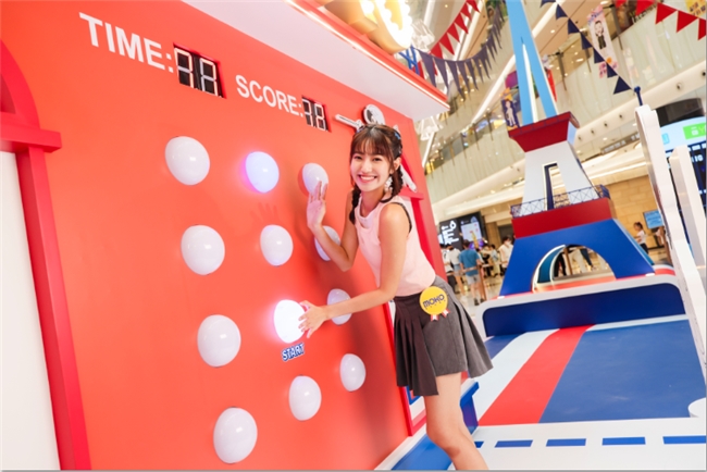 4.7米高的紅磨坊那極具標(biāo)志性的紅色配上璀璨金色亮燈MOKO字樣,非常的搶眼。紅磨坊前設(shè)置擊劍場(chǎng),由“無(wú)敵劍神”及“世一劍后”坐陣,邀請(qǐng)游客參與這場(chǎng)反應(yīng)與速度的挑戰(zhàn),游戲限時(shí)30秒,隨著墻上拍拍燈隨機(jī)亮起,每按下一盞亮燈即可得分,讓游客在充滿歡樂(lè)的挑戰(zhàn)中,看看自己是否有成為新一代劍神劍后的實(shí)力。