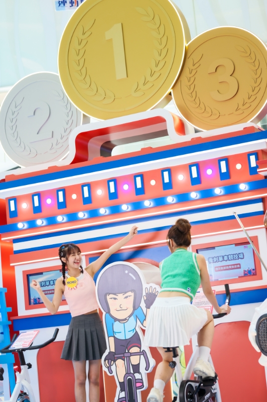 寓意慶祝勝利的凱旋門(mén)上方豎立著所有運(yùn)動(dòng)員都渴望于這國(guó)際體壇舞臺(tái)贏取的金銀銅牌,寄托了對(duì)我國(guó)運(yùn)動(dòng)員的美好祝福,游客更可參與單車互動(dòng)競(jìng)技游戲,踏上單車裝置與現(xiàn)場(chǎng)“小女車神”齊齊破風(fēng),以最快速度完成200米計(jì)時(shí)賽競(jìng)逐“車神”寶座。