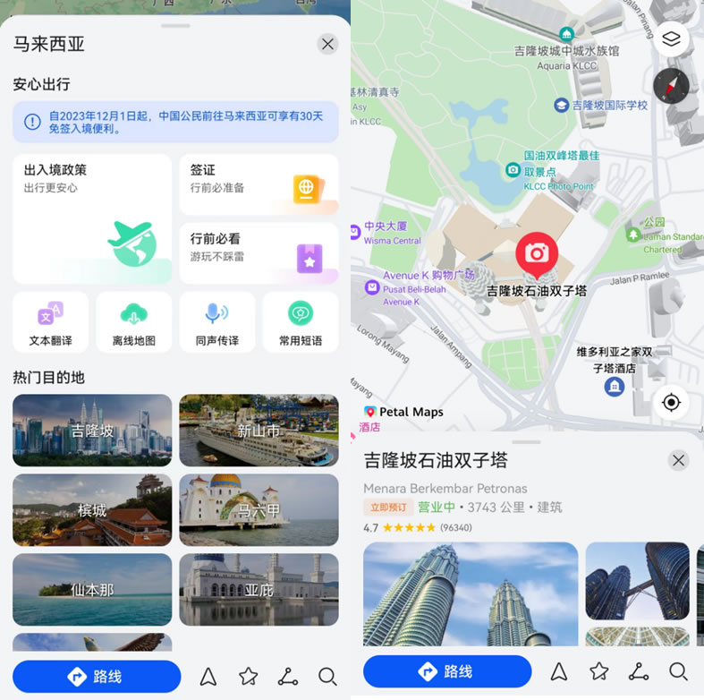 不用怕!Petal Maps是更適合中國寶寶的導航。它不僅原生默認支持中文界面和語言導航,還能提供覆蓋全球 160+ 國家和地區(qū)的詳細地圖數據,豐富的地理位置信息和精準的路線規(guī)劃,能帶你輕松抵達目的地,發(fā)現隱藏的景點和美食。