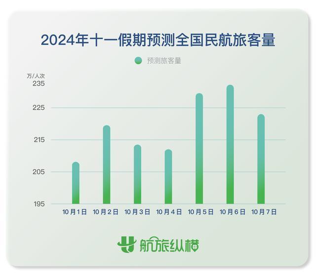 今年國慶旺季民航繼續(xù)呈“量升價跌”趨勢。據(jù)民航出行服務平臺“航旅縱橫”近日發(fā)布的報告顯示,2024年國慶假期期間(10月1日至10月7日)全國民航旅客量預計將超1565萬人次,日均旅客運輸量達223萬人次,同比2023年國慶假期增長7%,較2019年同期增長19%。