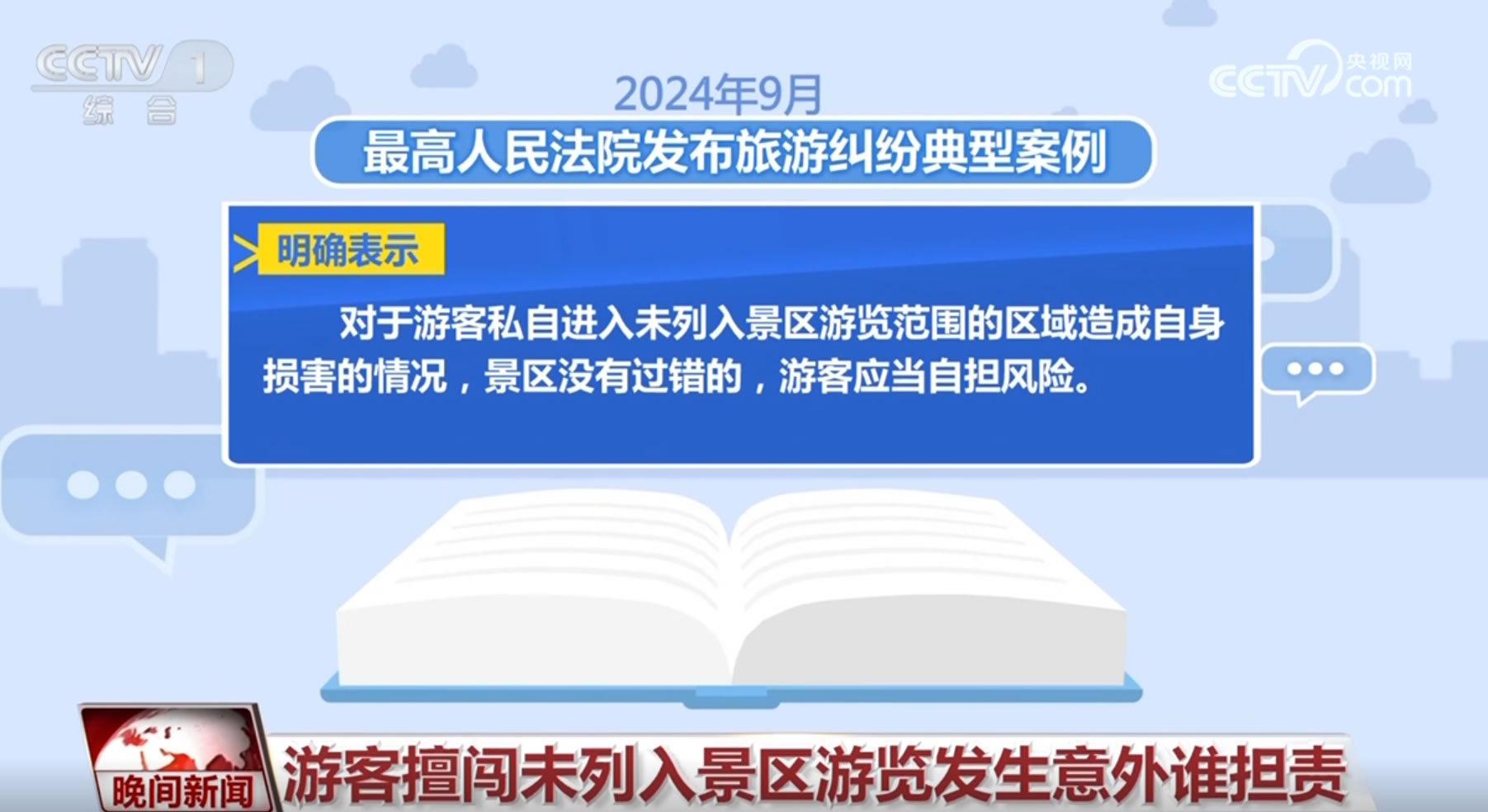 今年9月,最高人民法院發(fā)布旅游糾紛典型案例,明確表示:對于游客私自進入未列入景區(qū)游覽范圍的區(qū)域造成自身損害的情況,景區(qū)沒有過錯的,游客應當自擔風險。