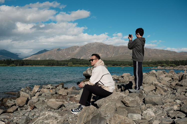 此次旅程也是黃覺與兒子核桃的首次單獨(dú)旅行。在新西蘭,黃覺父子倆共同體驗(yàn)了這片土地的多面魅力。他們身處蒂卡普湖畔的星空下,仰望南半球璀璨的銀河,感受宇宙的浩瀚;乘坐基督城的復(fù)古電車,穿梭于這座充滿歷史感的城市,一邊欣賞街景,一邊聆聽向?qū)еv述基督城的故事,體驗(yàn)這座城市的復(fù)蘇與活力;搭乘高山觀景火車,從基督城出發(fā),穿越南阿爾卑斯山脈,沿途經(jīng)過雪山、峽谷和森林,靜靜欣賞車窗外的絕美景色,享受這段寧靜的旅程;在電影《指環(huán)王》的取景地霍比屯,他們俯身邁入霍比特人的小屋,仿佛置身于電影中的魔幻世界。