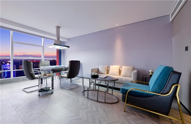 多元空間:從商務到社交的無縫切換:酒店配備3個不同風格多功能會議室,可同時容納300人;商務中心提供“百寶箱”便民服務;7樓自助洗衣房集成洗烘燙一體設備;30樓空中花園茶室與15樓棋牌室則滿足多元社交需求。