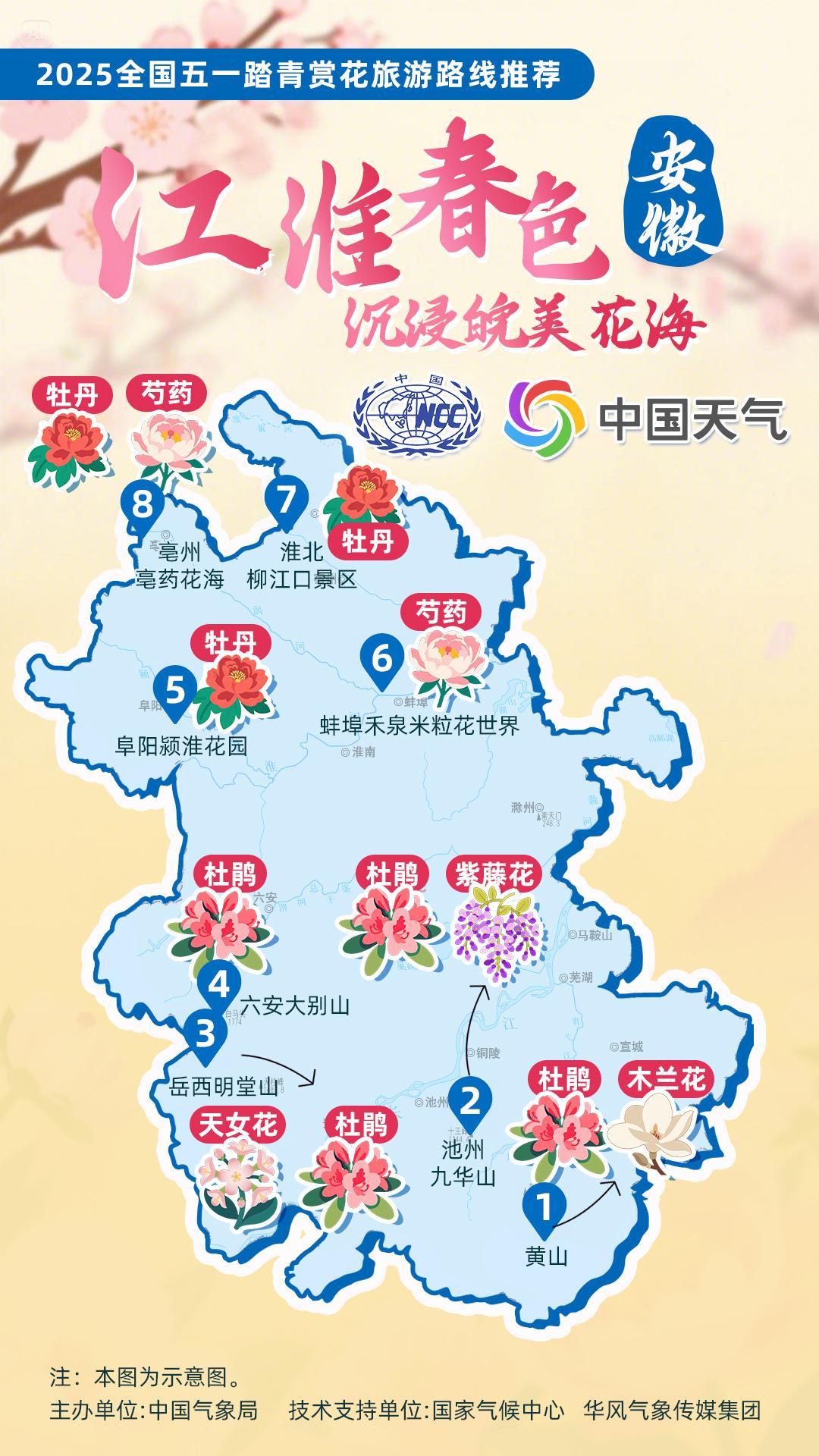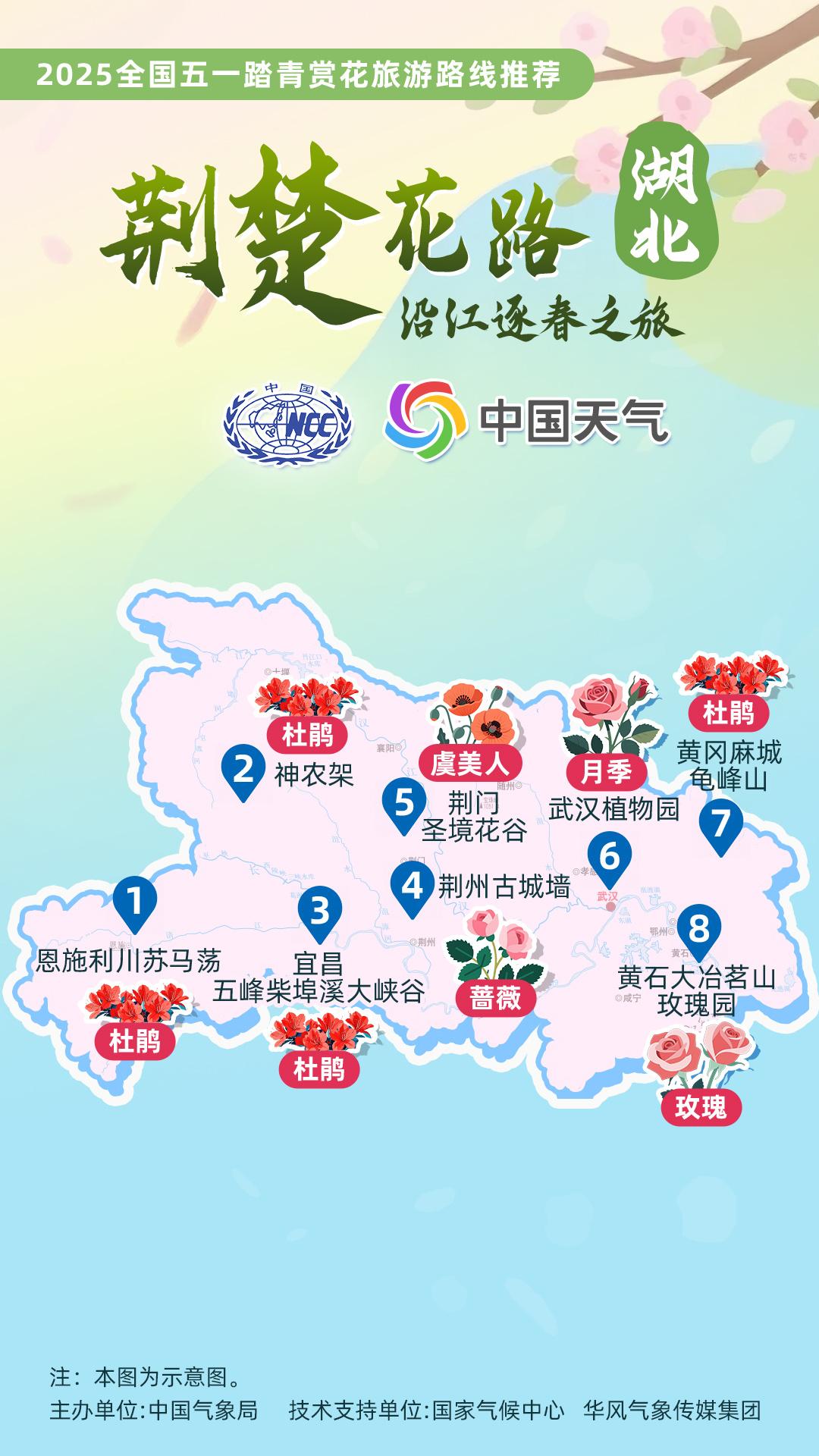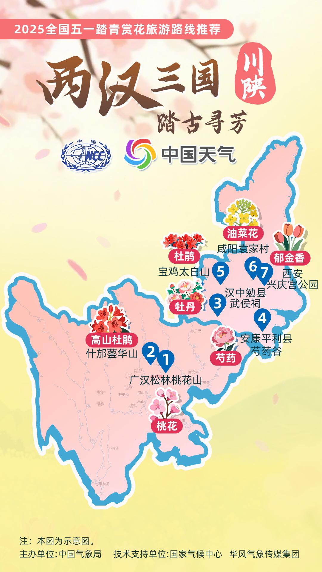 正值杏花、杜鵑花等春花盛放時節(jié),中國氣象局針對全國景點主要花品,對其生長積溫和物候期進(jìn)行關(guān)聯(lián)性分析,建立多種花品的最佳觀賞期預(yù)報模型,提供賞花預(yù)報服務(wù)。在此基礎(chǔ)上,國家氣候中心、華風(fēng)氣象傳媒集團依據(jù)歷史氣候資料和今年氣候預(yù)測,參考花期模型預(yù)報結(jié)果,結(jié)合區(qū)域地理分布、小氣候特征和旅游景點等信息,推出4月下旬至5月上旬適宜踏青賞花的線路。