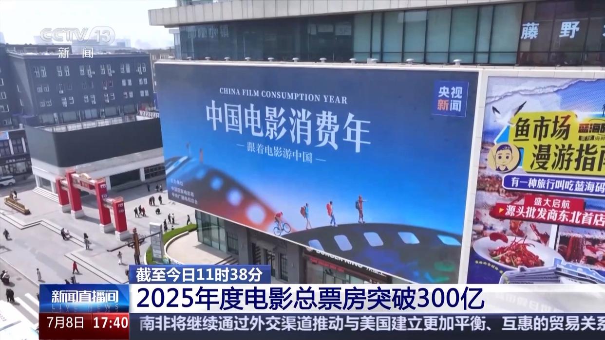 據(jù)網(wǎng)絡(luò)平臺數(shù)據(jù),截至今天(7月8日)11時(shí)38分,2025年度電影票房(含預(yù)售)突破300億,相較去年提前28天。