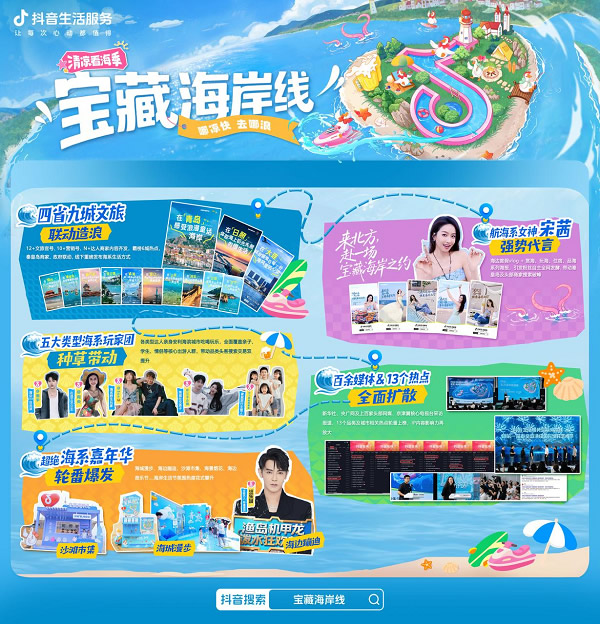 當海浪與城市共鳴,當流量與體驗共振,抖音生活服務(wù)聯(lián)合四省九城打造了一場「寶藏海岸線」文旅盛宴,交出了一份令人矚目的答卷。從政府到商家,從明星到達人,從線上種草到線下狂歡,這場以“海”為核的超級IP,不僅激活了海岸經(jīng)濟的新動能,更重新定義了夏季海濱生活的無限可能。