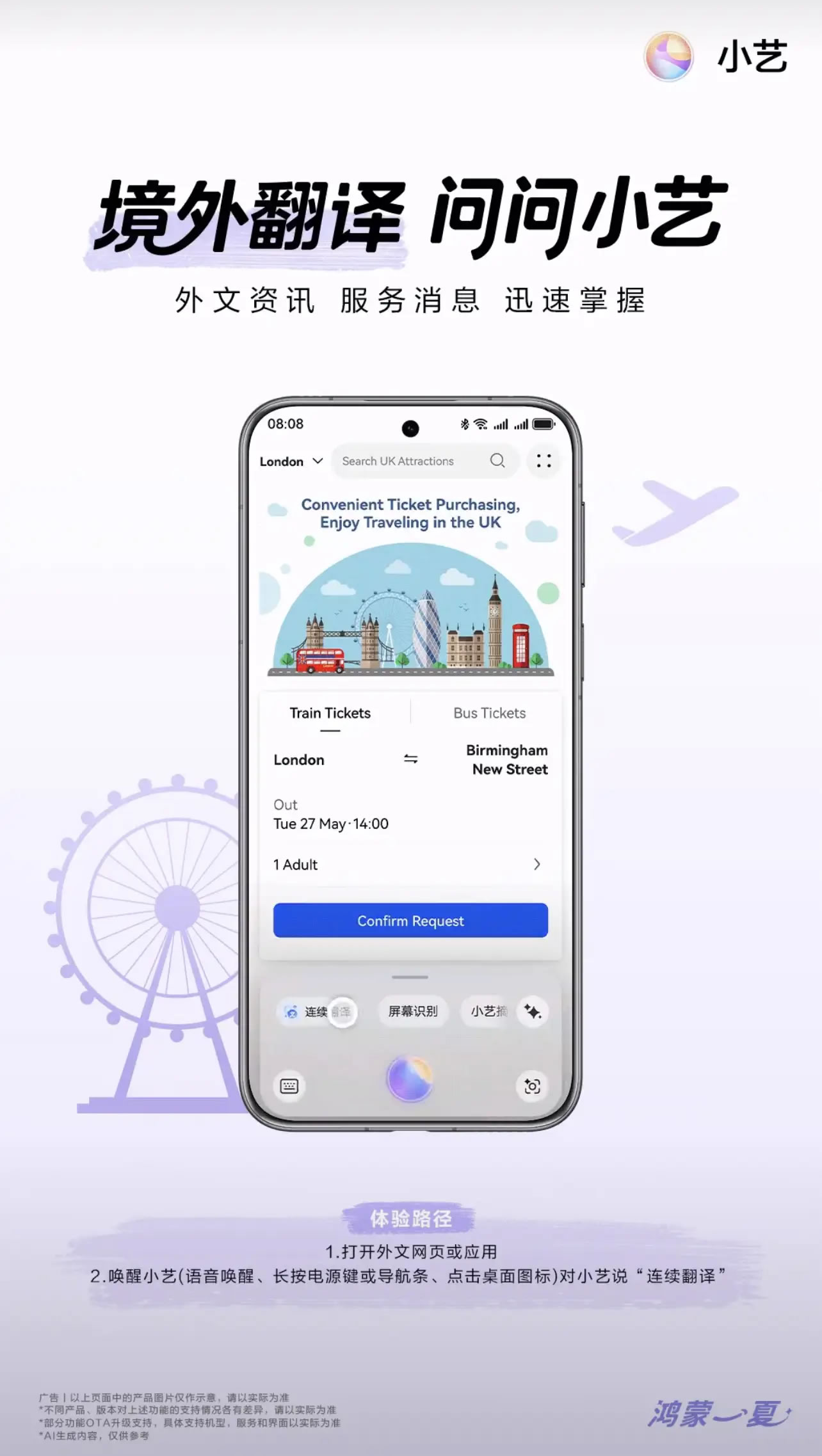 出境游用小藝翻譯,打破語言障礙