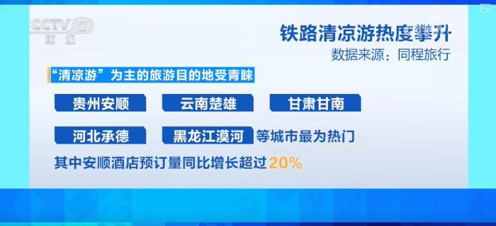 旅游平臺(tái)數(shù)據(jù)顯示,“清涼游”為主的旅游目的地受青睞。貴州安順、云南楚雄、甘肅甘南、河北承德、黑龍江漠河等城市最為熱門,其中安順酒店預(yù)訂量同比增長(zhǎng)超過(guò)20%。