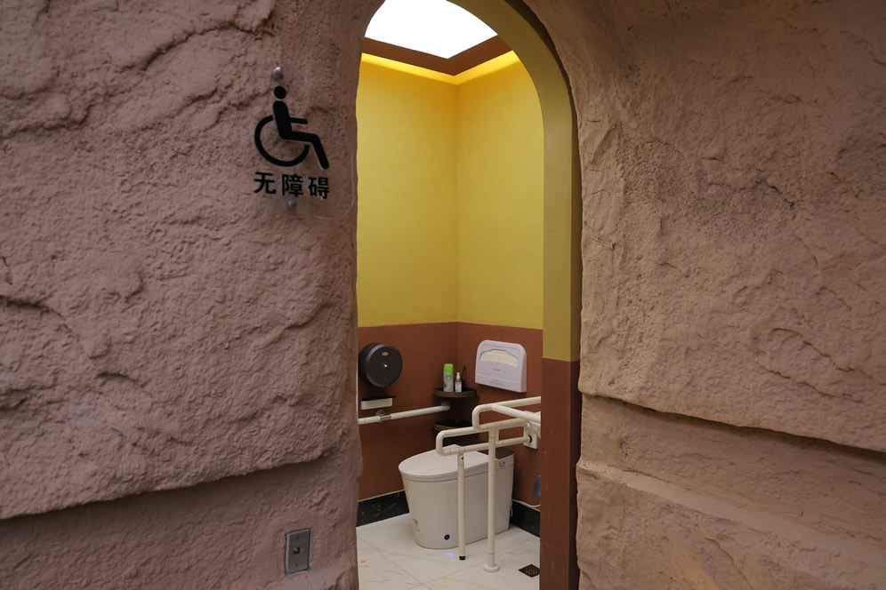 此外,九牧創(chuàng)新性地打造近千平米的“全齡友好型人文關懷樞紐”:母嬰群體專享獨立哺育室,配備抗菌護理臺、兒童安全座椅及自清潔穹頂系統(tǒng),打造潔凈溫馨的親子空間;長者及殘障人士無障礙專區(qū),設置低位感應洗手池、防滑安全扶手及智能語音導航,實現(xiàn)自主無憂通行;還可通過潮汐衛(wèi)生間動態(tài)調(diào)節(jié)廁位資源,解決代際照護如廁難題;全齡游客共享多功能服務島——休憩區(qū)配備茶飲自助機、行李寄存柜及文化展陳,滿足從嬰幼兒到銀發(fā)族的多元需求。