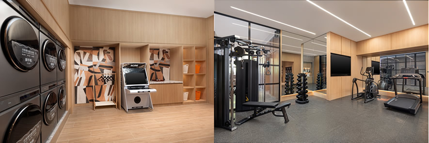 暢享“智慧”家居也是Atwell筑格酒店的重要特色之一。酒店配備全屋智能操控系統(tǒng),支持語(yǔ)音控制與一鍵客服,賓客可輕松調(diào)節(jié)溫度與燈光,使用智能家電,并配備隨心調(diào)節(jié)高低的升降桌以滿(mǎn)足不同場(chǎng)景需求。浴室設(shè)有熱毛巾架,電視支持智能投屏,賓客可獲得更順暢的居停體驗(yàn)。酒店還設(shè)有“洗躍”健身洗衣空間,配有座位、游戲機(jī)等設(shè)施,打造具備洗衣和健身功能的社交休閑區(qū),讓入住體驗(yàn)更加豐富自在。