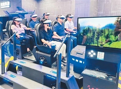 體驗館里,游客體驗《元創(chuàng)芷江》裸眼3D,重回1938年,身臨其境地看到1.9萬余名民工修筑二戰(zhàn)時期盟軍遠東第二機場——芷江機場的場景。近年來,紀念館不斷創(chuàng)新展陳方式,推出和平藝術中心“元宇宙”科技體驗館,以數(shù)字化“元宇宙”科技融合手段,打造愛國主義教育研學品牌,提升研學游附加值。體驗館分為14個體驗區(qū)域,運用VR、AR、3D裸眼等沉浸式技術,為游客提供高度虛擬化沉浸式的芷江抗戰(zhàn)歷史故事體驗。