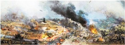 臺兒莊大戰(zhàn)紀念館全景畫館一景。