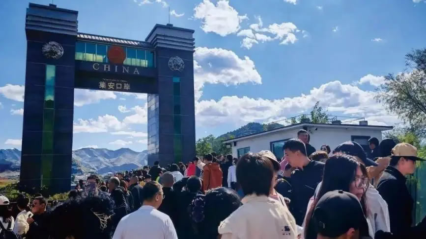 鴨綠江國門景區(qū)人頭攢動(央廣網(wǎng)發(fā) 吉林省文化和旅游廳供圖)