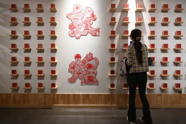 在這里,600余種、7大類(lèi)印章琳瑯滿(mǎn)目,游客可以親身體驗(yàn)版畫(huà)印、數(shù)字噴印、套章印等十余種印刷方式。其中,套章印尤其受青睞,通過(guò)4至7種不同顏色印章的搭配,可以呈現(xiàn)赭紅、石綠等豐富的敦煌色彩。形形色色的印章還可拓在卷軸上,成為融合古典與現(xiàn)代的創(chuàng)意禮品。