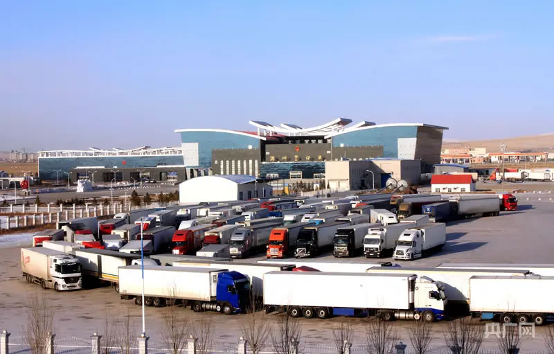 滿洲里公路口岸貨車等待進(jìn)出境(央廣網(wǎng)發(fā) 張鵬 攝)