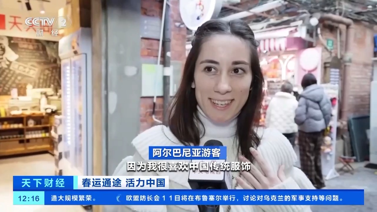 阿爾巴尼亞游客:準(zhǔn)備給我外甥和我自己買(mǎi)衣服,因?yàn)槲液芟矚g中國(guó)傳統(tǒng)服飾,我想在我的婚禮上穿著它。
