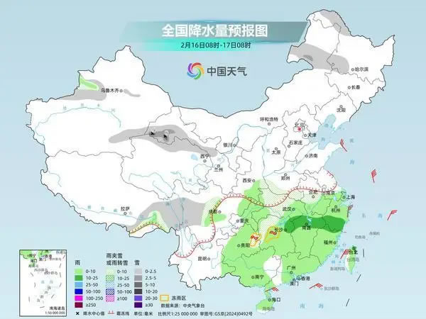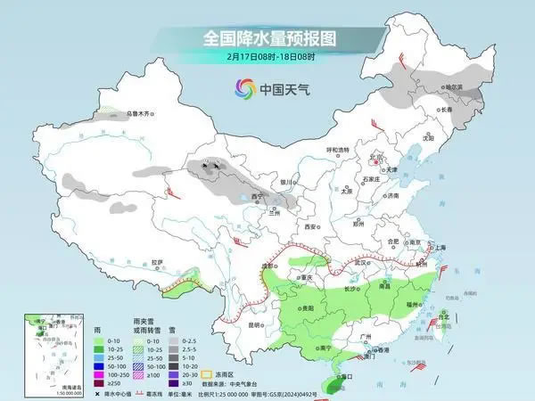 今天是春節(jié)假期第一天,我國降水增多增強(qiáng),江漢、江南等地部分地區(qū)降雨時(shí)還可能伴有強(qiáng)對流天氣,陜西、河南等地或現(xiàn)降雪。同時(shí),寒潮將自北向南影響中東部,不少地方迎換季式降溫,江南西部等局地降溫幅度可超12℃。