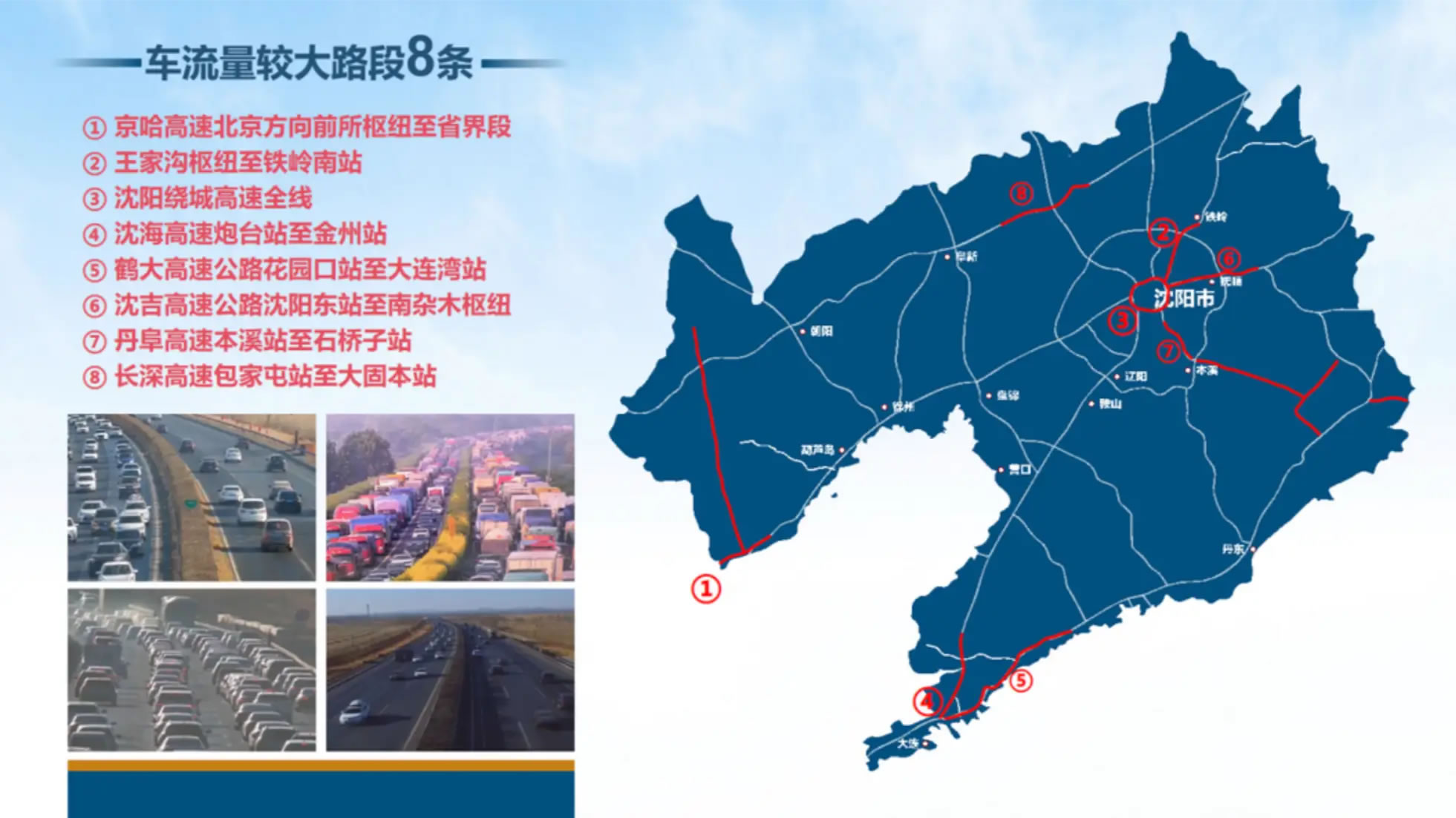 2月14日,記者從遼寧交投高速運營公司了解到,據(jù)預(yù)測,春節(jié)9天,全省高速公路車流量將達(dá)到962.6萬臺次,日均106.9萬臺次,同比增長36.5%。其中,沈陽、桃仙等15個收費站;京哈高速沈山段全線、沈陽繞城高速全線等8條路段;京哈高速遼中、凌海、盤錦服務(wù)區(qū),長深高速那四服務(wù)區(qū)等10個服務(wù)區(qū)車流量較大。