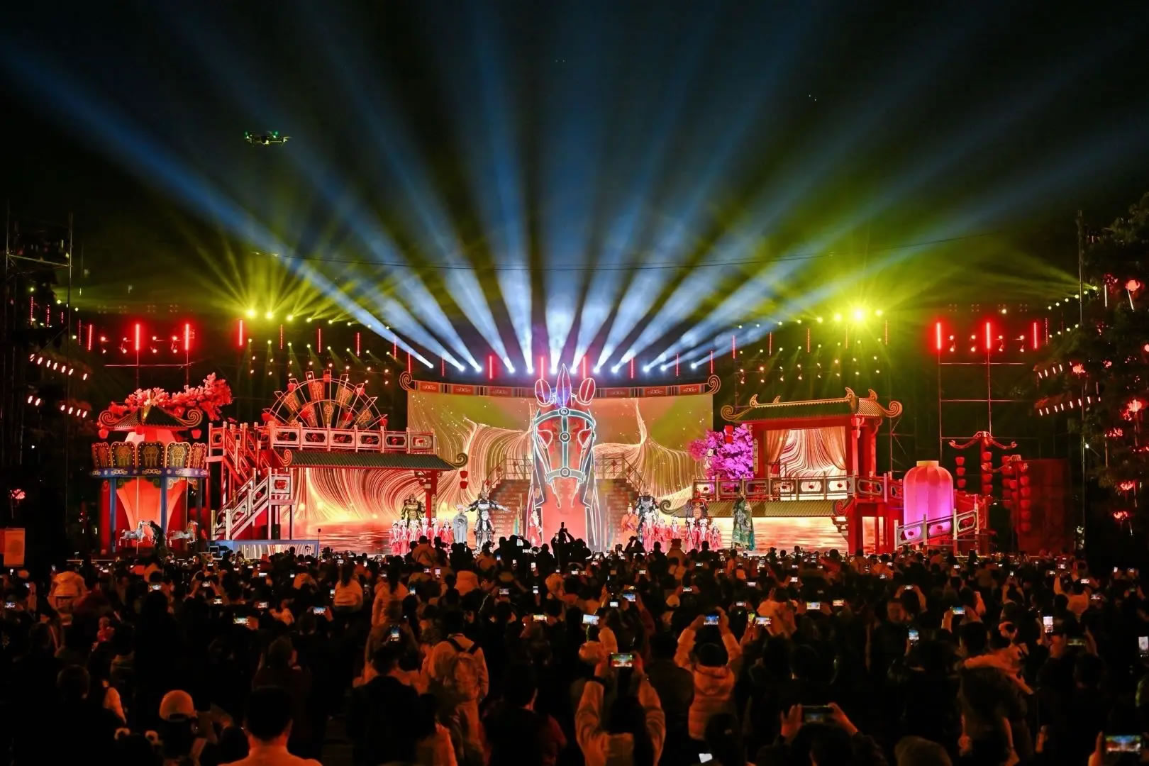 成都市圍繞“九天開出一成都·萬戶千門入畫圖——到成都街頭走一走”核心主題,持續(xù)開展主題活動(dòng)130余場(chǎng)次,共同營(yíng)造活力滿滿、熱氣騰騰的新春喜慶氛圍。宜賓作為中央廣播電視總臺(tái)2026年春節(jié)聯(lián)歡晚會(huì)四大分會(huì)場(chǎng)之一,合江門廣場(chǎng)、501白酒文化圣地、李莊古鎮(zhèn)等重點(diǎn)景區(qū)景點(diǎn)亮相全國(guó)熒幕。達(dá)州市突出科技民俗盛宴點(diǎn)亮除夕夜,渠縣“科技盛景,廟會(huì)新元”國(guó)風(fēng)廟會(huì)盛大開幕,融合無人機(jī)光影秀、AI機(jī)器人互動(dòng)秀、直升機(jī)低空巡景與廟會(huì)馬戲團(tuán),打造沉浸式科技民俗體驗(yàn)。南充市閬中古城作為中國(guó)春節(jié)文化之鄉(xiāng),創(chuàng)新推出新春大廟會(huì)、五湖四海閬苑過大年、2026閬中春節(jié)聯(lián)歡會(huì)等特色文旅活動(dòng)。