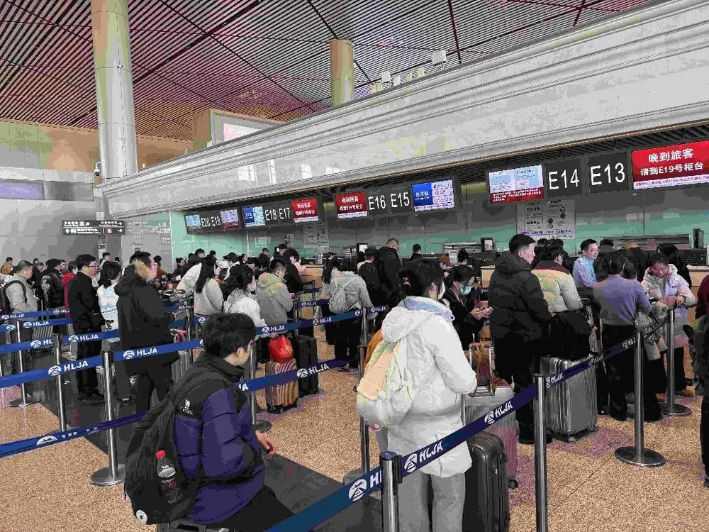 春節(jié)假期以來(lái),哈爾濱機(jī)場(chǎng)客流持續(xù)高位運(yùn)行,呈現(xiàn)出“客流量大、寬體機(jī)多、聯(lián)動(dòng)性強(qiáng)”的運(yùn)行態(tài)勢(shì)。根據(jù)預(yù)測(cè),2月20日起,哈爾濱機(jī)場(chǎng)進(jìn)入返程高峰期,其中2月23日(正月初七)為整個(gè)春運(yùn)期間客流峰值日,預(yù)計(jì)當(dāng)天運(yùn)送旅客超10萬(wàn)人次,返程高峰期呈現(xiàn)游客集中返程,峰值高、周期短的特點(diǎn)。據(jù)統(tǒng)計(jì),從哈爾濱飛往北京、上海、廣州、深圳、重慶等城市的部分航班客座率接近100%,從北京、上海、廣州、深圳、?凇⑷齺喌瘸鞘酗w往哈爾濱的航班客座率達(dá)到90%。