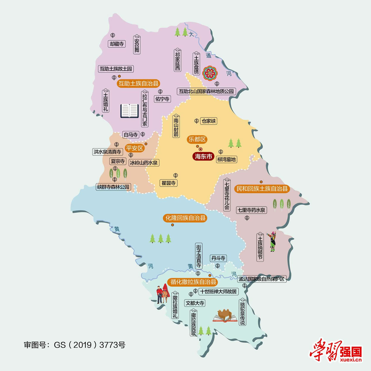 海東市轄2個(gè)區(qū)、4個(gè)自治縣:
