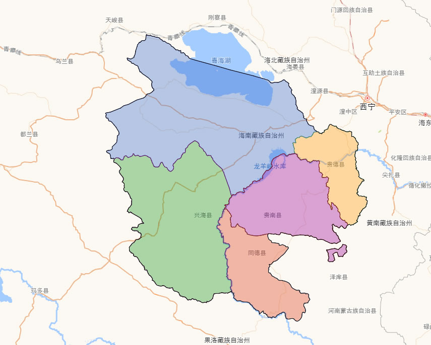 海南藏族自治州轄轄5個(gè)縣: