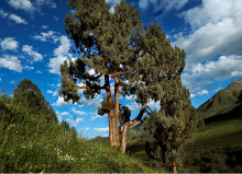 祁連圓柏為常綠喬木。是青藏高原氣候驟變時期產(chǎn)生的樹種,是名副其實的常青樹。其葉在幼樹上全為刺形,隨著樹齡的增長刺形葉逐漸被鱗形葉代替,廣泛分布于海拔2600 -4300米的陽坡、半陽坡地帶,耐寒旱、耐貧瘠,對土壤要求不高,能生于酸性、中性及石灰質(zhì)土壤上,其枝葉會散發(fā)出獨(dú)特的清香,具有清神醒腦的功效。因其根系發(fā)達(dá),有良好的保水固土和涵養(yǎng)水源的作用,固為祁連地區(qū)主要的造林樹種和草原牧護(hù)林。以葉入藥,性苦,有止血、鎮(zhèn)咳功效。