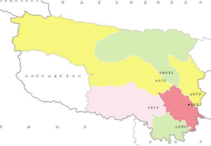 玉樹藏族自治州轄1個(gè)縣級市、5個(gè)縣: