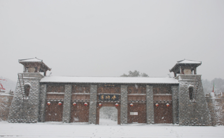 落在山勢(shì)險(xiǎn)峻,谷深崖陡、植被茂密的雄偉攔谷建筑就是“二關(guān)”,該建筑為邊關(guān)哨卡式建筑,寨墻和大門為全石結(jié)構(gòu),因?yàn)槭墉h(huán)境、條件限制,北宋時(shí)期義軍用干碴砌壘,占地面積200多平方米,長(zhǎng)40余米,高8米,寬3.5米,該建筑卡谷而立森嚴(yán)壁壘,旗掩霸寨,由插翅虎雷橫把守。