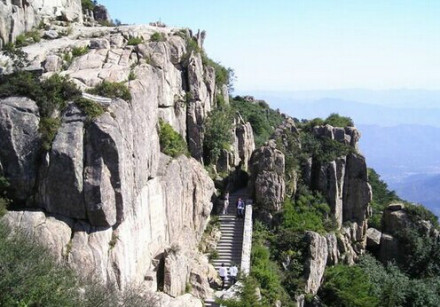 天燭峰景區(qū)地處泰山玉皇頂東北,是通往岱頂?shù)臇|大門。登山路進山口距泰山火車站約20公里路程,是泰山常規(guī)登頂路中最為原始和古樸的路線,也是自然景觀最美的一條路,代表了泰山自然景觀的極致。從泰安乘車沿泰佛路東北行,至艾洼村,從天燭勝景坊進山。穿過古栗樹林,經(jīng)會仙峪,沿陡直石階路上去,便是仙鶴灣。溪在石灣里流淌,流出仙鶴的模樣。跨溪又上,手拉鐵鏈,登上好漢坡,攀登小十八盤,見兩峰夾峙,中間建起望天門。望天門北側是山呼臺,下臨萬丈深淵,面對大天燭峰。主要景點:會仙峪、仙鶴灣、小十八盤、天燭峰。