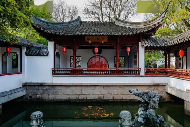 沁芳亭在小說里也建于橋上,故稱亭橋。這里靠近園門,為出入的要道,為觀全園景致極佳之處。 “沁芳橋”是寶、黛常常幽會之處,《紅樓夢》中大觀園里很多動人的故事發(fā)生在這里。
