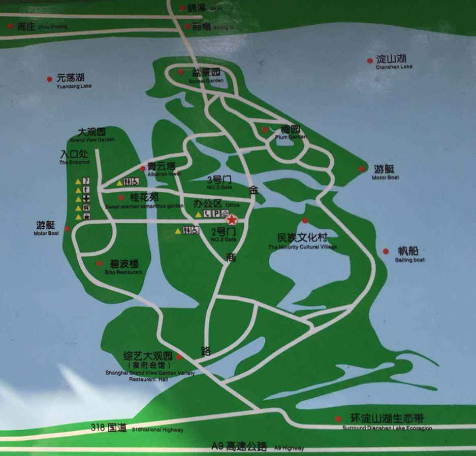 上海大觀園位于上海青浦區(qū)青商公路701號,坐落于淀山湖西側(cè),距離上海市區(qū)65公里,占地135畝,建筑面積約8000平方米。原稱淀山湖風(fēng)景游覽區(qū),1991年改稱上海大觀園,占地也擴大到1500畝,是上海市精神文明建設(shè)的重點單位,經(jīng)過多次的整修擴建,是一個集觀光、旅游、休閑的綜合性游樂園。