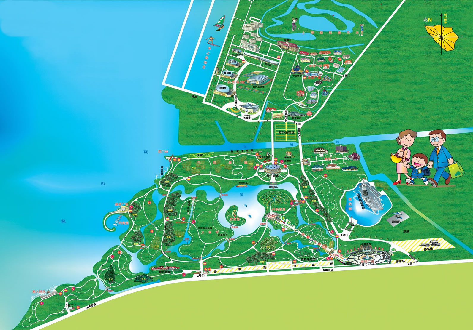 東方綠舟坐落于上海市青浦區(qū)西南,臨近風景宜人的淀山湖畔,占地面積5600畝,其中水域面積達2000畝。東方綠舟由知識大道區(qū)、勇敢智慧區(qū)、國防教育區(qū)、生存挑戰(zhàn)區(qū)、科學(xué)探索區(qū)、水上運動區(qū)、體育訓(xùn)練區(qū)、生活實踐區(qū)共八大園區(qū)組成。
