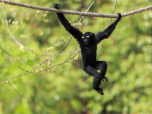 展區(qū)內樹木成蔭,還安置了許多豐容設施。長臂猿最愛在高大樹木、纜繩間嬉戲。