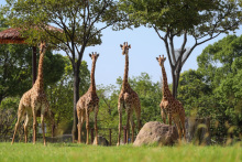 長頸鹿是世界上現存最高的陸生動物。上海野生動物園的長頸鹿分別安置在步行展區(qū)和車入展區(qū)。車入區(qū)以大草原、稀樹林的形式展出,游客坐在大巴車上能觀看長頸鹿的日常生活狀態(tài),同時還能欣賞到長頸鹿與其他動物一起和睦相處的場景。步行區(qū)游客可以親身感受和長頸鹿親密互動。長頸鹿雅苑每月第三周周三9:00~11:00進行停展維護(具體以現場公告為準)。