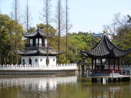 是一座具有獨特風(fēng)格的明代園林,由明代龔氏園、沈氏園、金氏園和城隍廟合并而成,為上海五大古典園林之一。秋霞圃以清水池塘為中心,石山環(huán)繞,古木參天,造園藝術(shù)獨特,分桃花潭、凝霞閣、清鏡堂、邑廟等四個景區(qū)。桃花潭景區(qū)的池上草堂,有“一堂靜對移時久,勝似西湖十里長”的贊譽。凝霞閣景區(qū)的“環(huán)翠軒”軒西有復(fù)廊式“碑廊”,上集明清碑刻17方。從西門入園,院內(nèi)森桂軒的四周遍植桂樹;軒南置明代遺物“三星石”,分別取名“福、祿、壽”;園內(nèi)還有一“涉趣橋”,建于民國十年(1921年),連接曲徑北岸,橫跨幽泉清溪。