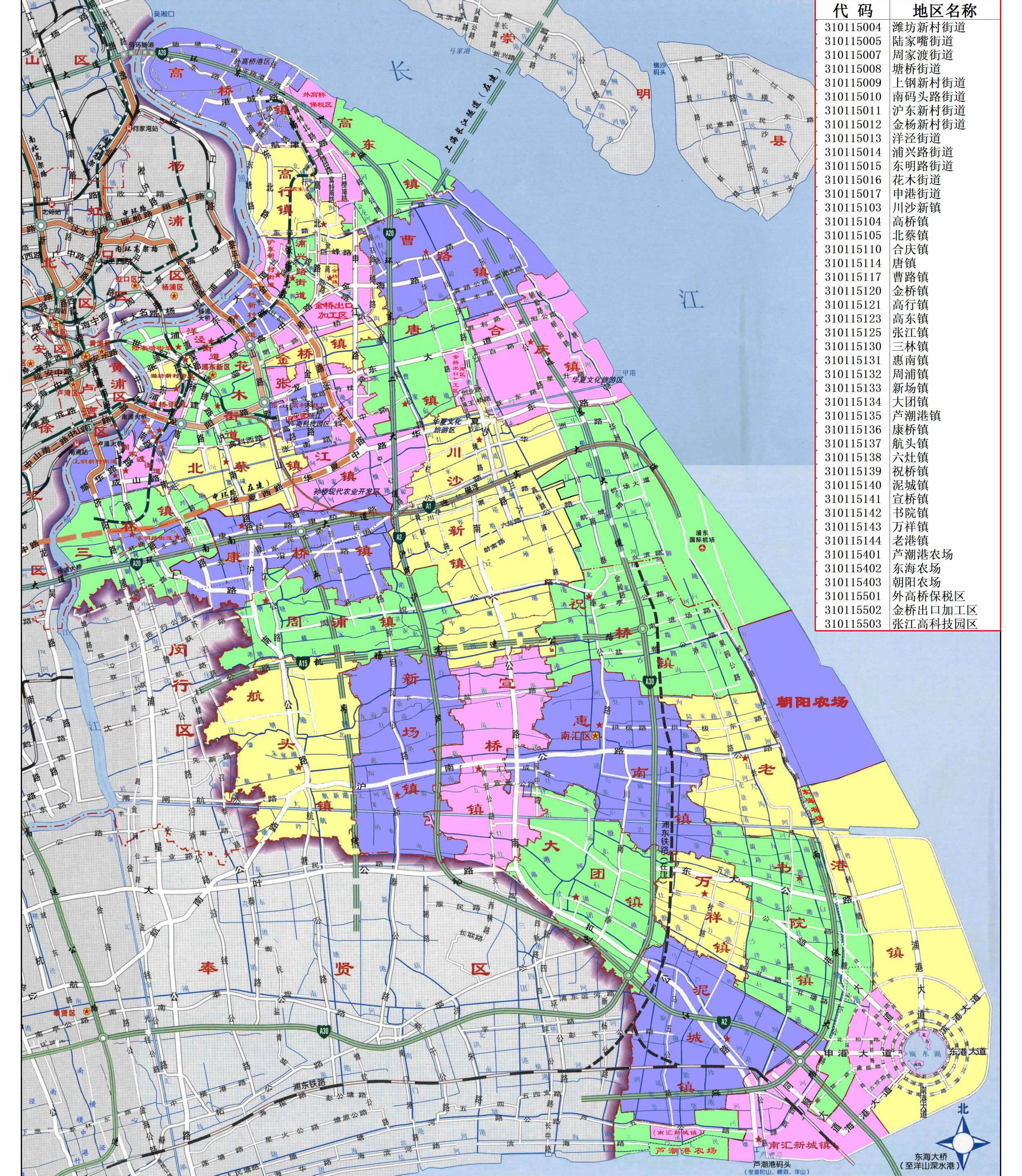 鎮(zhèn):川沙新鎮(zhèn)、高橋鎮(zhèn)、北蔡鎮(zhèn)、合慶鎮(zhèn)、唐鎮(zhèn)、曹路鎮(zhèn)、金橋鎮(zhèn)、高行鎮(zhèn)、高東鎮(zhèn)、張江鎮(zhèn)、三林鎮(zhèn)、惠南鎮(zhèn)、周浦鎮(zhèn)、新場(chǎng)鎮(zhèn)、大團(tuán)鎮(zhèn)、康橋鎮(zhèn)、航頭鎮(zhèn)、祝橋鎮(zhèn)、泥城鎮(zhèn)、宣橋鎮(zhèn)、書院鎮(zhèn)、萬祥鎮(zhèn)、老港鎮(zhèn)、南匯新城鎮(zhèn)
