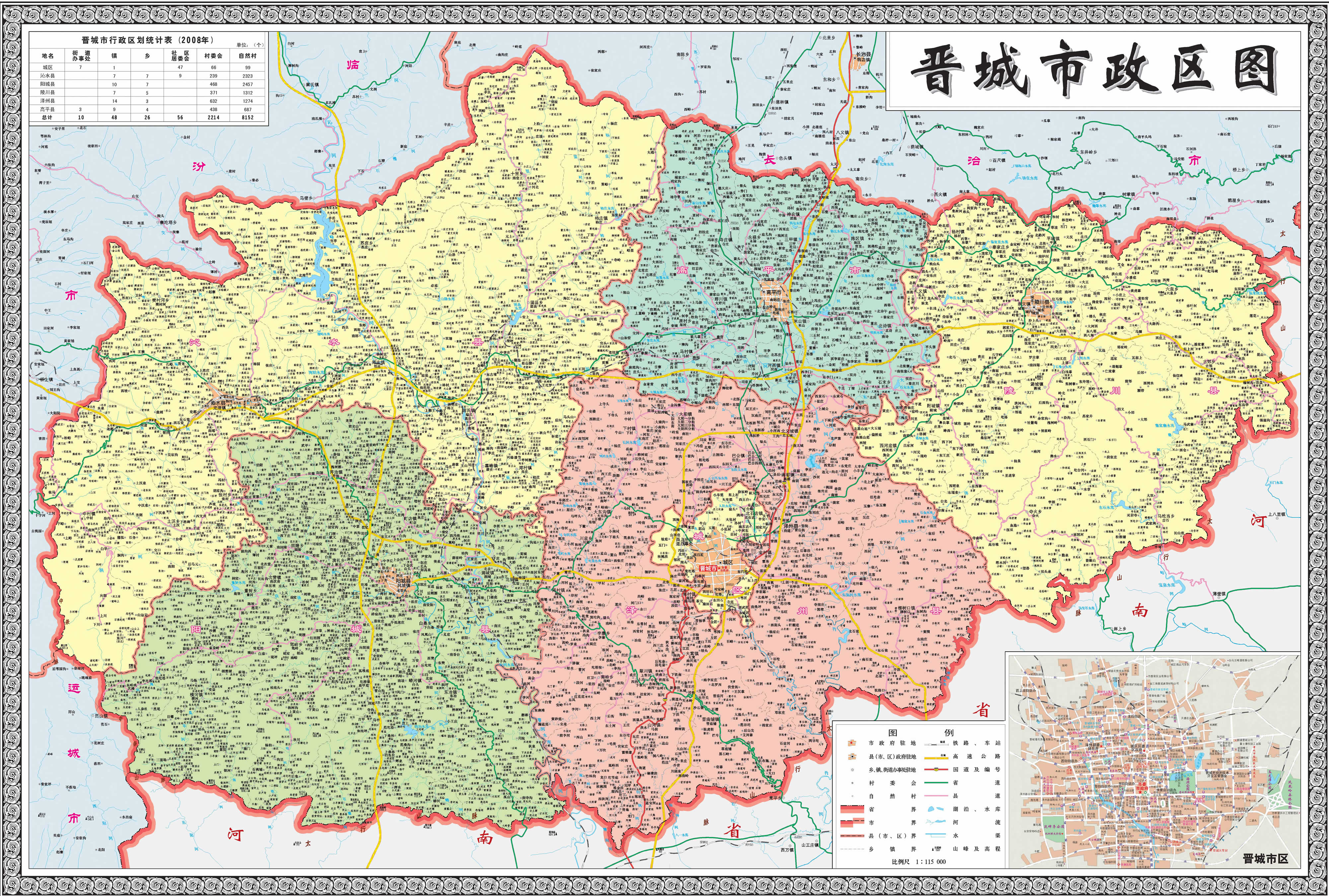 晉城市轄1個(gè)市轄區(qū)、4個(gè)縣,代管1個(gè)縣級市: