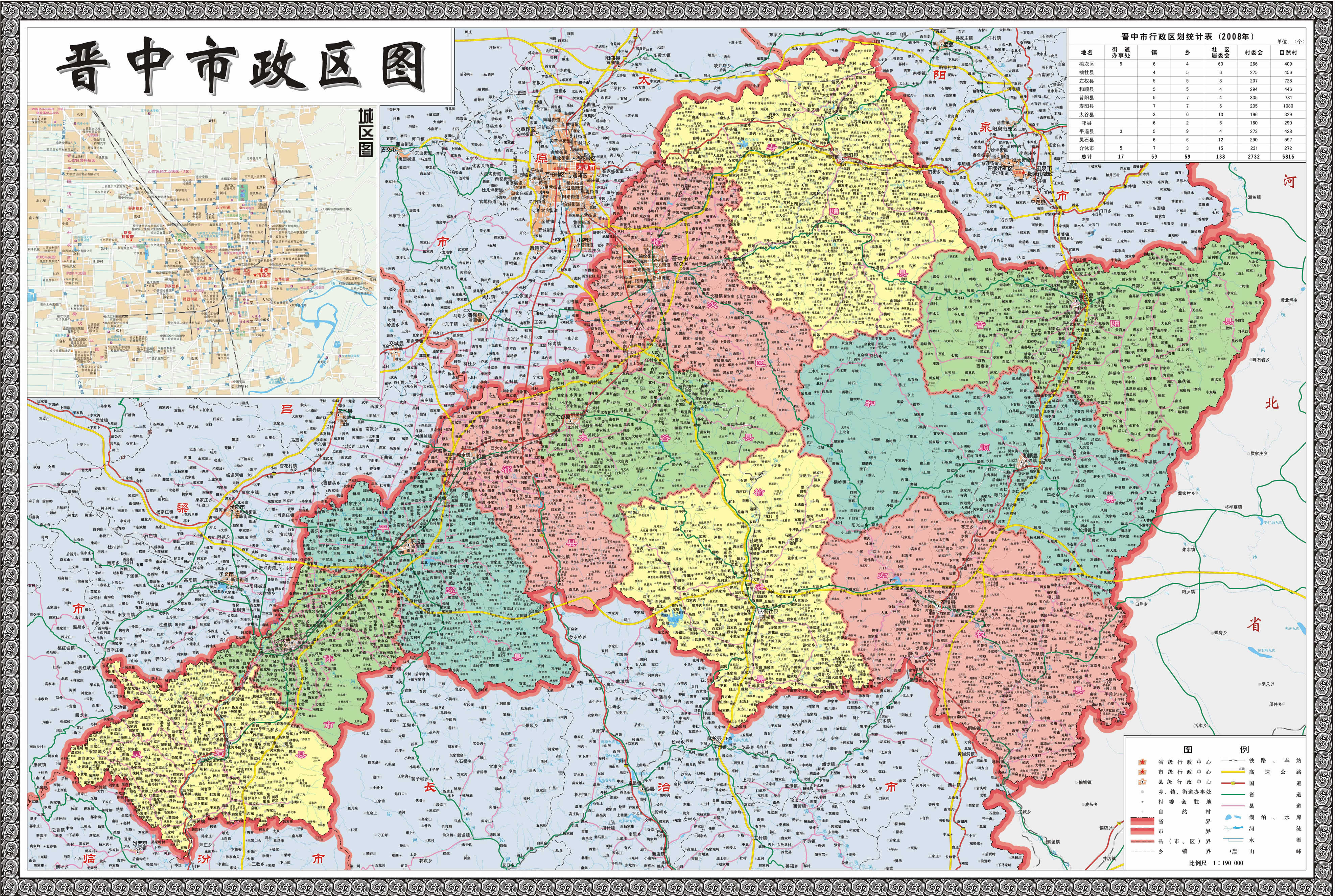 晉中市轄2個(gè)市轄區(qū)、8個(gè)縣,代管1個(gè)縣級(jí)市: