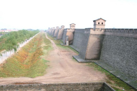 康熙四十三年(1703年)因皇帝西巡路經(jīng)平遙,而筑了四面大城樓,使城池更加壯觀。平遙城墻總周長6163米,墻高約12米,把面積約2.25平方公里的平遙縣城一隔為兩個(gè)風(fēng)格迥異的世界。
