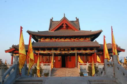 獻殿是祭祀時用來擺放供品的地方,也是主祭人員的主要活動場所,位于祭祖活動區(qū)中軸線位置上,建筑面積1250平方米,面闊五間,進深五間,單層重檐,廊圍四邊,是仿明代全木結(jié)構(gòu)建筑,十字歇山屋頂與仿明戲臺連為一體,其高度,跨度乃三晉之首,其華麗壯觀為全國罕見。