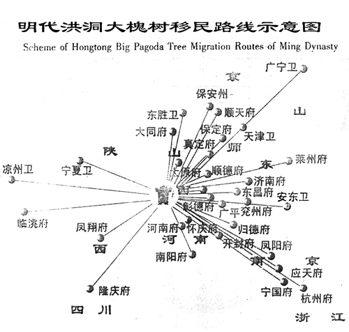 由于明朝大移民在山西省洪洞縣廣濟寺門前的大槐樹下進行移民手續(xù)辦理,即移民的起點,因此本次移民叫做洪洞大槐樹移民,而在此移民出去的人群,絕大多數(shù)并非洪洞縣人,甚至不是山西人。