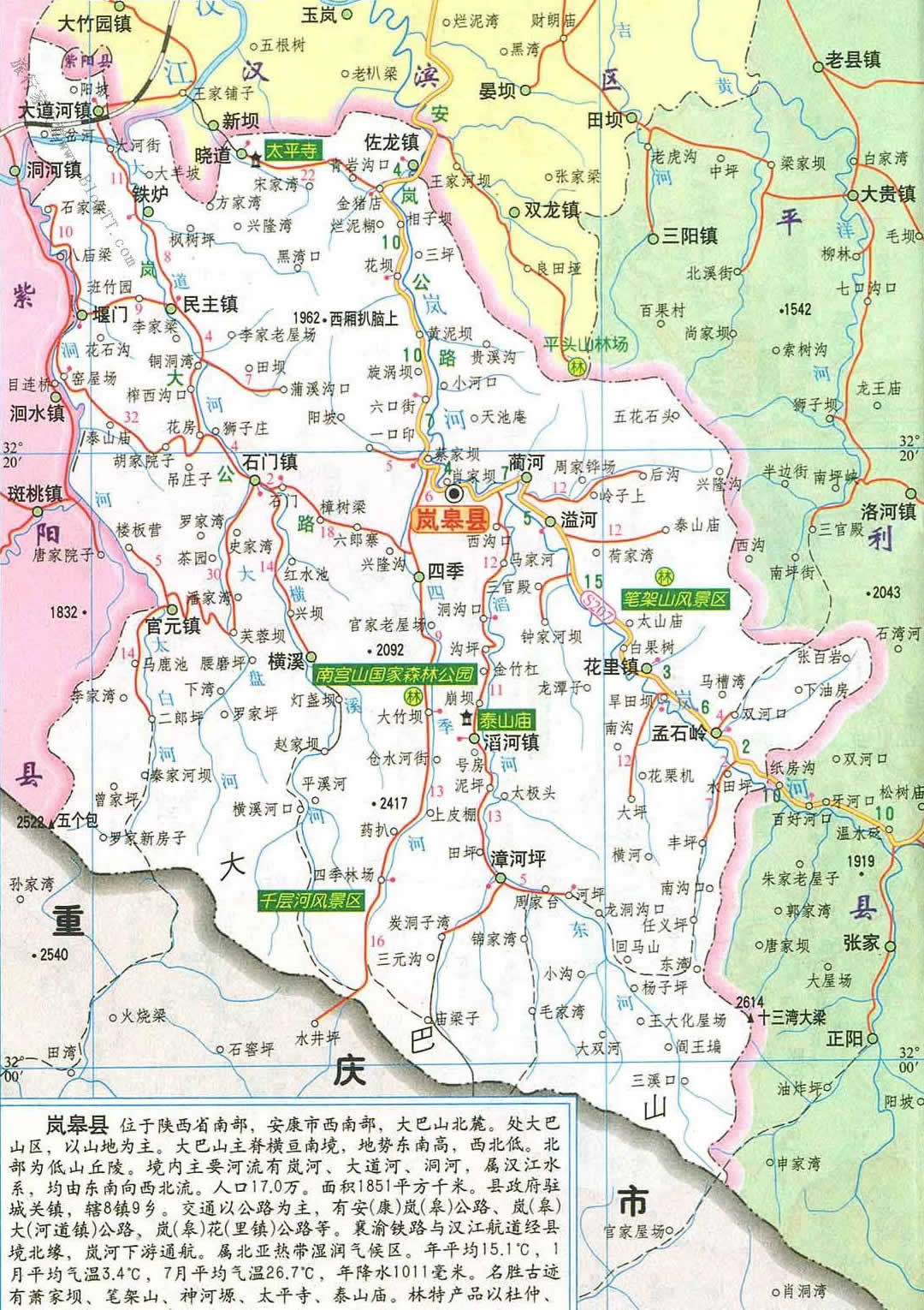 嵐皋縣位于陜西南部,大巴山北麓,南與重慶市城口縣接壤,北與安康市漢濱區(qū)、西與紫陽縣、東與平利縣相鄰,最高海拔2641米,最低海拔331米,北距安康市區(qū)71公里,全縣轄17個(gè)鄉(xiāng)鎮(zhèn)198個(gè)行政村,4.4萬戶,全縣總面積1956平方公里,人口17萬。其中農(nóng)業(yè)人口15.2萬人,境內(nèi)以山地為主,屬典型的亞熱帶大陸性季風(fēng)氣候。
