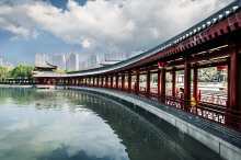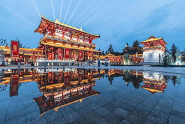 大唐芙蓉園,位于陜西省西安市雁塔區(qū)大雁塔東南側(cè),占地面積1000畝,其中水域面積300畝。大唐芙蓉園是在原唐代芙蓉園遺址以北,仿照唐代皇家園林式樣重新建造的,是中國第一個全方位展示盛唐風(fēng)貌的大型皇家園林式文化主題公園。
