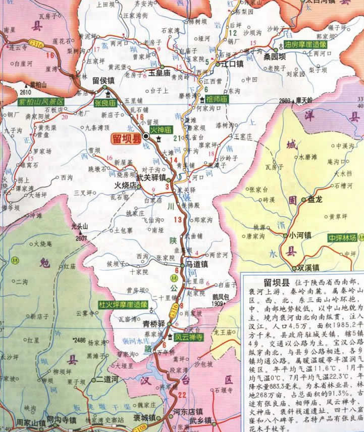 留壩縣轄5個(gè)鎮(zhèn)、4個(gè)鄉(xiāng):