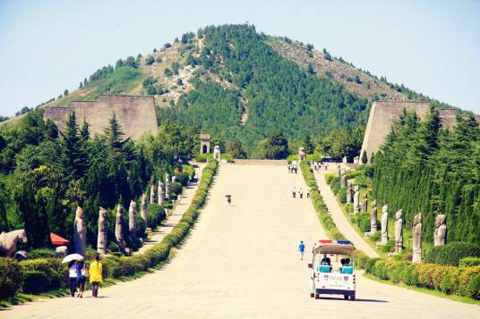 乾陵是第一批全國(guó)重點(diǎn)文物保護(hù)單位,也是盛唐文化的代表性旅游區(qū),位于乾縣城北6千米的梁山上,是中國(guó)唐王朝第三代皇帝高宗李治和中國(guó)歷史上唯一的女皇帝武則天的合葬陵,仿唐長(zhǎng)安城格局構(gòu)筑,分為宮城、皇城和外城三個(gè)部分。內(nèi)城面積約為230萬(wàn)平方米,有南朱雀、北玄武、東青龍、西白虎四門(mén),外城周長(zhǎng)40千米,F(xiàn)存有華表、翼馬、無(wú)字碑、六十一蕃臣石像等精美絕倫的大型石刻100多件。陵園的東南隅分布有17座陪葬墓,出土以唐三彩為代表的珍貴文物4000余件,壁畫(huà)1200多平方米,石雕線刻畫(huà)150平方米,其中永泰公主墓、章懷太子墓和懿德太子墓地宮已對(duì)中外游客開(kāi)放,為國(guó)家4A級(jí)旅游景區(qū)。